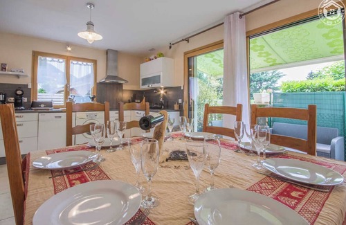 Detached house (adjoining with garages). Ground floor: living room-kitchen-lounge, WiFi, home cinema. 1st floor: 3 bedrooms (2 single beds that can be combined into 1 double bed 160x200cm / 1 double bed / 1 double bed, 2 single beds), mezzanine-living room (1 double sofa bed), 2 shower rooms ( showers), 2 separate WCs. Centralized suction. Terrace (passageway all around the house). Garage (3 spaces). Sheets included + beds made + household linen included. Ski Arêches 22 km, Crest-Voland 23 km, Hauteluce-Val-Joly/Contamines-Montjoie 25 km, les Saisies/Espace Diamant 26 km. Cross-country skiing 20 km. Swimming pool and ice rink 6 km. Body of water 15 km. Golf 23km. Country house located 5 km from Albertville & 22 km from the slopes. Charming typical village in the countryside overlooking the cluse albertvilloise. Very good comfort. Warm contemporary country character. Zen & cozy. Very charming. Ultra spacious. Very complete quality equipment. Pleasant exposed and shaded terrace (wide walkway along the house). Nice view of the massif. Very close to shops and services.