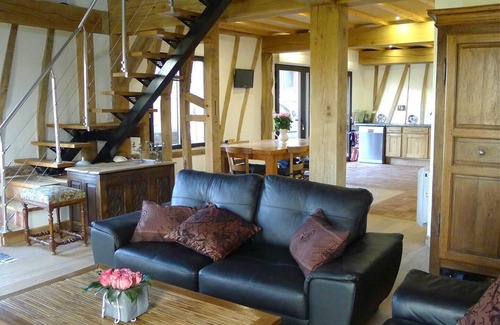 A wooded region, a beautiful flower-filled village, and numerous walks are possible in the surrounding area. The house is a former barn built in the 19th century, fully restored in the authentic style of the region, with exposed beams and period roof framing.