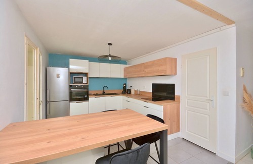 The Cocoonr/Book&Pay agency offers this 103 m² house for rent in Décines-Charpieu, which can accommodate up to 8 travelers. It features an attractive 40 m² living room, an open-plan fitted kitchen, four bedrooms, two bathrooms (with shower) and a 120 m² garden. Bed linen and towels included, we're waiting for you!