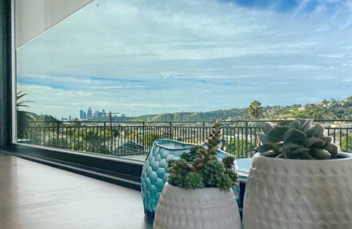 Spacious Private hillside house (2 bed/ 2 bath) freshly rebuilt as a design showcase with sweeping views of mountains, palm trees and downtown skyscrapers. Professionally cleaned and sanitized. This comfortable 1400 sq foot house has a convenient location and the peaceful neighborhood is the perfect home base for your LA adventure! Every detail carefully considered for a relaxing stay. Views of LA from every window, and alsofrom the huge 400 sq ft private deck. Very safe, with secured gate to enter the property. Convenient location in the heart of LA, easy to access but secluded in a quiet neighborhood near wilderness park. (Please read house rules prior to booking. No large groups, no smoking, quiet hours after 10pm).
