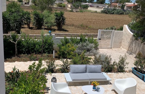 The "Casa Saline" is a very modern apartment for 4 guests with a large private terrace / garden, just 300 meters from the wonderful sea of the Dunes of Campomarino di Maruggio, Blue Flag 2019, totally autonomous, is located inside the "La Janca" a brand new and delightful Villa with a panoramic Swimming pool on the beautiful Salento countryside, elegantly furnished, equipped with every comfort, with a spacious double bedroom, bathroom, large living room with comfortable two-seater sofa, fully equipped kitchenette, patio, outdoor shower with hot water, ideal for holidays for adults and children.