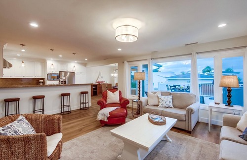 Step inside to find a beach-chic interior that will inspire quintessential indoor/outdoor living. The spacious living room, modern chef's kitchen, and semi-formal dining area seamlessly connect to a large deck with sweeping ocean views. Whether you're grilling on the barbecue, dining al fresco at the outdoor table, lounging on the sofa, or soaking in the jacuzzi tub, you'll love every moment of your stay here.