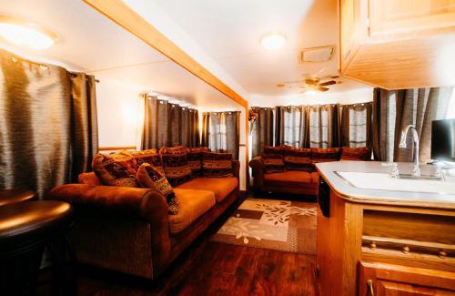 Providing a shared lounge, La Junta Colorado Cabins features accommodations in La Junta. Each accommodation at the 3-star campground has quiet street views, and guests can enjoy access to a seasonal outdoor swimming pool and a garden. The campground provides rooms with air conditioning, available on site private parking, and an electric vehicle charging station. Featuring free Wifi, the units have a washing machine and a flat-screen TV with streaming services. There's also a well-equipped kitchen in some units equipped with an oven, a toaster, and a stovetop. At the campground, all units come with bed linen and towels. There is a snack bar, and a mini-market is also available. Guests at the campground will be able to enjoy activities in and around La Junta, like fishing and hiking. Guests can also warm up near the outdoor fireplace after a day of cycling. Colorado Springs Airport is 99 miles away.