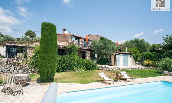 The Mas and attached apartments are set in 2 hectares of olive trees overlooking the mountains that lead down to Cannes and Frejus (45 mins). Tour the "6 Perched Villages", discover Nice, Cannes or Grasse, hike to the Roman waterfalls in the Siagnole Gorge or spend a day by the pool with only the sound of the wind and birds to relax you.