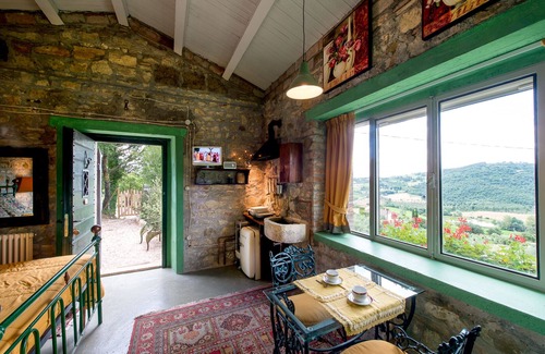 It boasts a quaint double room with a kitchenette, bathroom, and a single bed located on the mezzanine level for added capacity. Breathtaking views of the lower valleys can be seen through the windows of La Limonaia. Outside there is a large garden area with a BBQ, Dining Area, & Spa (available all year).