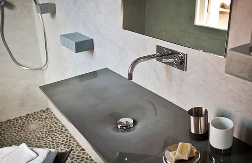 The "Earth" room is voluptuous. Furnished entirely in wood, dressed in tadelakt on the walls and waxed concrete in the bathroom, this independent room will delight you with its sobriety and its little exotic accent. Overlooking our immense day well, this room benefits from exceptional natural lighting. Equipped with independent reversible air conditioning, an LED TV screen and high-speed wifi.