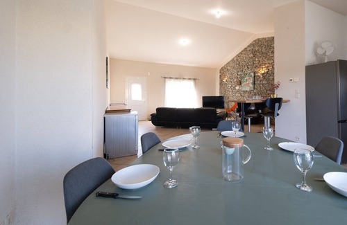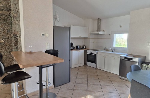 This house can accommodate up to 7 people in its 3 bedrooms, its large living room with open kitchen and its large fully enclosed garden. All on one level with a view of the countryside.