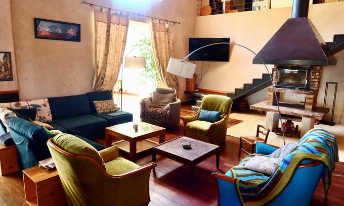 Composed of two gîtes (200 m² and 100 m²), it can accommodate up to 12 people , in the heart of a natural, calm and private environment, with a large garden and a heated swimming pool .