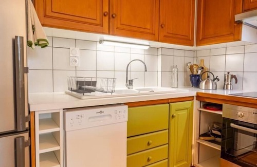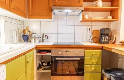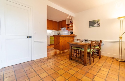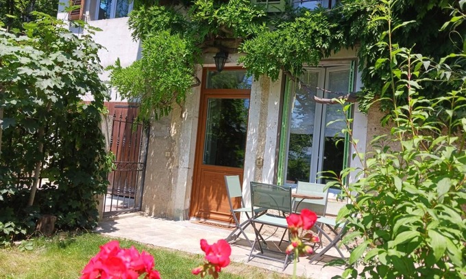 Single-story apartment on the ground floor of the owners' house with private garden, separate entrance: living room-kitchen-lounge (1 step to access the kitchen - 1 double sofa bed 140x190 cm), 1 bedroom (1 double bed 160x200 cm), bathroom (shower + toilet). 2 private parking spaces. Ski/bike storage. La Maison des soeurs is a spacious single-story apartment with a small, private, bucolic garden. The building housed the former dispensary of the Château de Chaffardon, in a peaceful residential area located 900 meters from the village shops. The cottage offers generous volumes, all opening onto the adjoining garden, and all linens are included.
