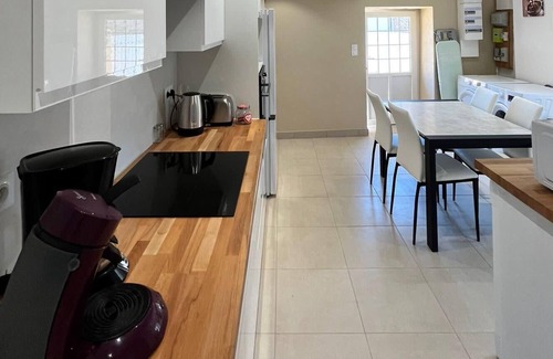 On the ground floor: fully equipped kitchen, (ceramic hob, fridge, freezer, washing machine, dryer, dishwasher, oven, microwave oven, filter coffee maker, bathroom (shower, washbasin ) Separate toilet with washbasin, upstairs, living room with a sofa bed, two bedrooms: bedroom 1 double bed 160cm, bedroom 2: 2 single beds (2*90cm), cupboards, desk, TV, wifi. The house can accommodate a maximum of 4 people, but there is the possibility of a 5th person on the sofa bed. Barbecue. The barbecue must be cleaned after use. You can park your car in the courtyard. Your arrival is independent. We will give you the instructions before your arrival Bed linen is provided as an option 10€/set/per person We wish to avoid noisy festivities.