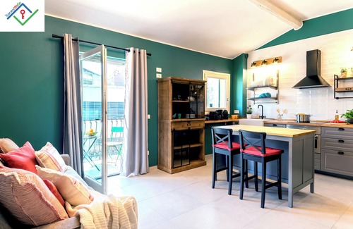 Perfect for families or business travelers, it accommodates up to 5 guests and offers all the comforts: fully equipped kitchen, two bedrooms, terrace, Wi-Fi, A/C, washing machine, and free parking.