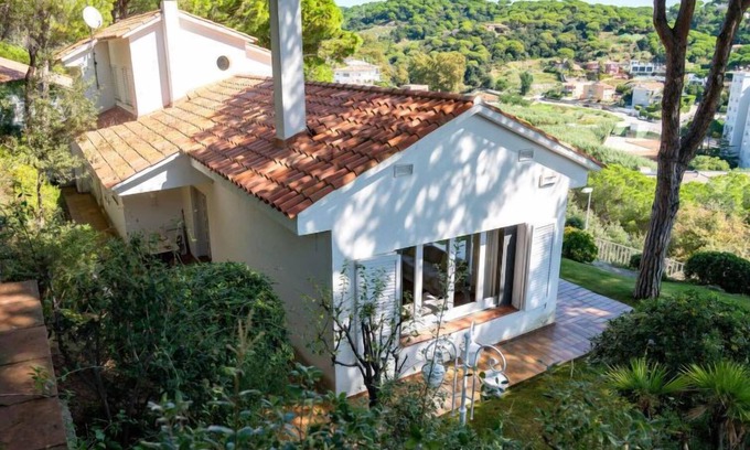 Beautiful, comfortable single-family house. Residential area (villas), excellent location: right in the centre but still quiet, from the sea, 200 m from the beach. Private: large garden 940 m2 with lawn and trees, roofed, parking, public parking on the road. Supermarket 350 m, restaurant 150 m, bar 150 m, café, bus stop 240 m, railway station 850 m. Golf course (18 hole) 5 km. Nearby attractions: Barcelona 58 km, Blanes 17 km, Mataro 24 km. The owner does not accept any youth groups. Neighbourhood highly sensitive to noise. Quietness and good behaviour expected.