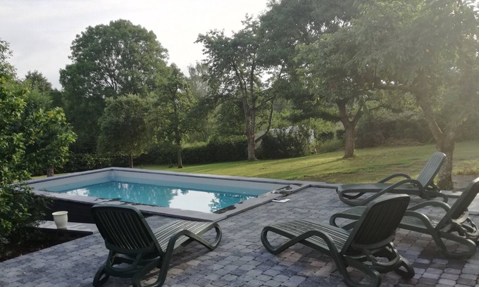 The place is magical, located in the hamlet of Hoursinne, dead end road, surrounded by woods and fields. A return to nature. Large garden, beautiful terrace and heated swimming pool from May to September.