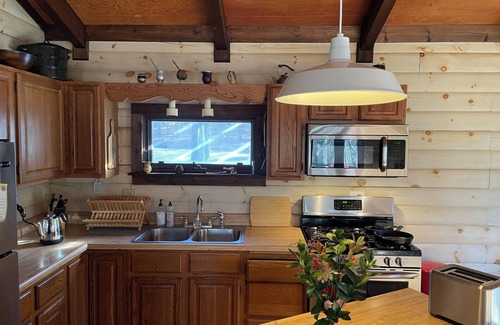 Our log cabin in the Catskill mountains is a perfect place for a couples retreat, remote work and family gatherings. Our forest borders over 200 acres of protected NY wilderness. Just walk out the back door for an early morning hike to see the sun rise through the woods. Cozy up to a fire in the great room with a puzzle or read to your favorite tunes before stargazing on the front deck.