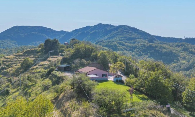 Modern single-family house "La Mela Musona", 650 m a.s.l.. In a quiet, sunny position on top of a hill, 25 km from the sea, in the countryside. Private: garden 350 m2 (fenced) with lawn. Terrace (20 m2), garden furniture, barbecue. In the house: storage room for bicycles. Motor access to the house (2 km mountain road). Parking (for 2 cars) at the house. E-charging station. Grocery 6 km, restaurant 3 km, bus stop 2 km, outdoor swimming pool 3 km. Walking paths from the house 10 m. Nearby attractions: Varese Ligure 14 km, Sestri Levante 25 km. Hiking paths: Passo del Bocco 4 km, Monte Porcile 7 km, Alpe di Maissana 6 km. Please note: car recommended. Local sale of farm products.