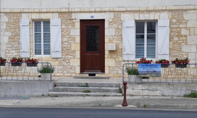 La Miramboise, chambres et table d hôtes in Mirambeau provides accommodations with a garden and a shared lounge. Among the facilities at this property are luggage storage space and bicycle parking, along with free Wifi throughout the property. Royan Train Station is 31 miles away, and Île de Patiras is 14 miles from the bed and breakfast. At the bed and breakfast, each unit comes with a wardrobe. The rooms come with a private bathroom with a shower and a hair dryer. At the bed and breakfast, the units come with bed linen and towels. Guests at the bed and breakfast will be able to enjoy activities in and around Mirambeau, like bike tours. Guests at La Miramboise, chambres et table d hôtes can enjoy hiking and walking tours nearby, or make the most of the sun terrace. Matata Caves is 27 miles from the accommodation. The nearest airport is Bordeaux–Mérignac Airport, 50 miles from La Miramboise, chambres et table d hôtes.