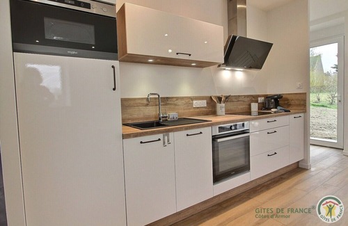 Your vacation rental includes on one level: a living room with kitchen leading - without door - to the SPA area and bedroom (a 180x200 double bed, which can be split into 2 90x200 single beds on prior request) , in the middle is the closed bathroom with shower and sink, a separate toilet with hand basin, a storage cupboard with washing machine. For your comfort: 2 terraces of 12 m² each (one to the North and the other to the South), a garden of 500 m², a gravelled driveway of 200 m² with private parking space. On the right of the gîte is a storage area for the owners. No stress riding on Saturday because here weekly reservations are made FROM FRIDAY TO FRIDAY. Outside of summer, SHORT STAYS are possible. Relaxation and relaxation await you in this brand new trendy gîte whose major advantage is having ITS OWN PRIVATE INDOOR SPA! Régine and Didier have just completed this second gîte for 2 people. The first is opposite their house, on the same property, all on a dairy farm that Didier will show you around on request. For your getaways on the Emerald Coast the location is great! From this Ploubalay countryside you will find the sea 3 km away, Saint Jacut de la mer and its Pointe du Chevet 9 km away, Saint Cast le Guildo and Saint Malo 17 km away and Dinard 14 km away. But don't forget to go down to Dinan and Léhon 17 km away along the Rance, pearls of medieval heritage. Those who do not yet know Mont Saint Michel can discover it 64 km away.