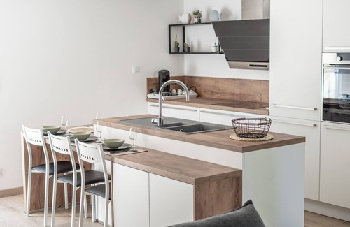 No need to pay for a restaurant every night, when you've got an oven, a stovetop, and a refrigerator on hand, as well as a coffee maker, an electric kettle, and a microwave. And you won't have to pack extra clothes, because you'll also have a washing machine. Other amenities include a living room, an ironing board, housekeeping, and heating.