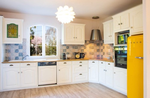 The house consists of a very large and beautiful living room with a modern, fully-equipped kitchen (oven, microwave, coffee machine etc...) and a TV lounge area with lots of books and games for all ages. There are 3 modern, beautifully decorated bedrooms, each with a 160 x 200 bed. In one of these three rooms you'll find a cot and changing table (high chair also available on site). There's also a bathroom with bath and separate toilet.