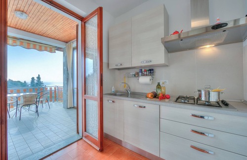 The modern apartment is on the first floor of a two-storey villa and offers an extraordinary view of Lake Maggiore from its beautiful, large terrace, where you can eat during the lovely summer and spring days. The flat also has a private garden which is fenced in on three sides and blessed with delightful sunshine. Inside the 2-bedroom apartment, there is a large living room and a separate kitchen, both overlooking the terrace and the lake. The kitchen is fully equipped with an oven, fridge, freezer, dishwasher, coffee machine, cooker hob, toaster, microwave and kettle.