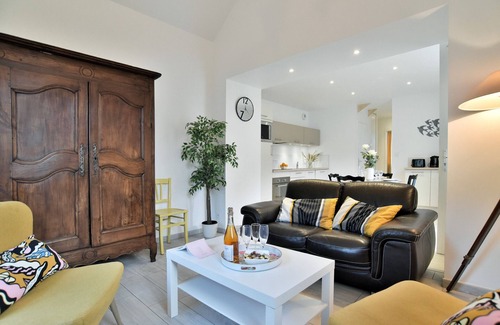Nestled in a private green haven, you'll undoubtedly be charmed by this lovely house where the yellow color brings energy and light to a minimalist interior. Ideally situated in a calm environment, La Petite Émilie is at the heart of Port de la Houle in Cancale, with everything accessible by foot: sea, swimming, restaurants, and shops. It's the perfect base for exploring Cancale and its surroundings! Fully renovated in 2019, this 80 m² house with its cozy garden offers all the comfort needed for a delightful vacation with family or friends, enjoying the rhythm of the tides!