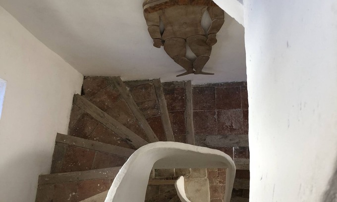 The house has a kitchen and dining area on the ground floor, living room with a wood burner for those cooler evenings on the first floor and a bedroom and ensuite shower room/toilet on the top floor. All accessed by a tile and plaster spiral staircase.