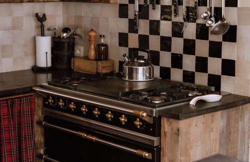 The kitchen is fully equipped and fitted with a French range cooker (Lacanche) offering 4 hobs, a coup-de-feu simmer plate and three ovens. Japanese Damascus steel kitchen knives, dish washer, stand mixer.