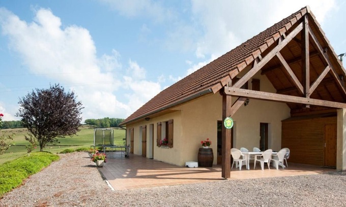 Owner of the neighboring guest house located a stone's throw away, Danièle welcomes you to a beautiful contemporary country villa (dating from 2003) nestled in peace, on the south-east hillside, well exposed, on the edge of a vast circus of meadows (with Aubracs & Charolais as peaceful neighbours) within a mini rural hamlet overlooking the village of Curgy (a listed Romanesque church from the 11th century). Nestled in the heart of the Morvandelle Autunoise countryside, 10 km from the majestic Château de Sully (16th century / listed as MH), one of the most beautiful French private châteaux open to the public, birthplace of Mac Mahon, President of the French Republic, in the hollow of a verdant bocage valley bordering an immense wild forest massif (set of several vast state forests) and the bucolic Drée valley (& its fish-filled river), this small typical village benefits from a soothing unspoilt rural setting of gentle mountains hilly. Spacious comfortable cottage. Warm country character. Large game room nestled under the roof in cabin mode. Large terrace area of 70m² largely sheltered. Pleasant lawned garden with ping-pong table, trampoline & swing. Superb unobstructed view of the surrounding countryside with the Morvan mountains in the background. Access to the owner's exceptional indoor heated swimming pool located 50m away (3.5x9m / shared with her guest room / pool-house with shower-WC). Composition: Detached house neighboring the owner's house (total independence without vis-à-vis). Wireless. Heat pump heating. Ground floor: living room-kitchen-lounge, 3 bedrooms (2 with double bed 140x190cm / 2 single beds 90x190cm) including one with private shower room (shower/WC), bathroom (bathtub/multi-jet shower), separate WC . 1st floor: bedroom (2 single beds 90x190cm), children's playroom/TV, separate WC. Terrace (sheltered and uncovered) + garden + private parking. Shared swimming pool (from May to the end of September). All amenities 9 km.