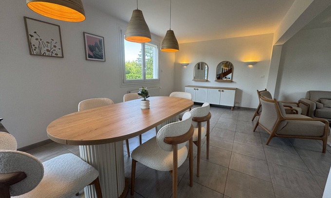 Welcome to La Porte du Circuit, a spacious and comfortable house located in Ruaudin, just a stone's throw from the mythical 24 Hours of Le Mans circuit.Enjoy a friendly stay in this 180 m² accommodation, designed to accommodate up to 6 people. Perfect for families, groups of friends, or professionals on the move, this villa combines modern comfort, high-end equipment, and a warm atmosphere. Home Assets•3 welcoming bedrooms equipped with double beds.•A fully equipped gas American kitchen: refrigerator, microwave, oven, freezer, dishwasher, dishes/cutlery, kitchen utensils, coffee maker, toaster, and kettle.•A comfortable living room with television for your relaxation moments.•40 m² terrace with garden furniture, ideal for outdoor meals.•A private garden to fully enjoy beautiful days.•On-site outdoor parking, convenient and secure.•Wi-Fi connection throughout the house.•Hair dryer, central heating for your comfort. An ideal locationLocated in Ruaudin, La Porte du Circuit benefits from a privileged location:•Just a few minutes from the 24 Hours of Le Mans circuit.•Close to local shops, restaurants and markets.•Easy access to iconic sites of the Sarthe and the lively shopping streets of Le Mans. High-end services signed Rêve au MansEnjoy a tailor-made stay thanks to our team available 24/7:•Breakfast delivery.•Private chef or catering reservation.•Private driver for your travels.•Floral services on request.•Grocery, wine, or appetizer platter delivery.•Rental of jacuzzi, baby equipment, scooters, etc. House Rules Parties prohibited (subject to withholding of deposit). Strictly non-smoking accommodation. Presence of noise, smoke, and motion sensors. Deposit by bank pre-authorization or mandatory insurance.