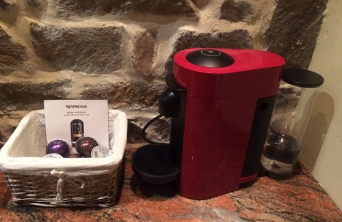 Enjoy cooking a wonderful choice of seasonal local produce in the beautifully appointed kitchen which features a Brittania oven located in the original fireplace- surrounded by a stunning exposed stone wall. A large refrigerator/freezer with water and ice dispenser, dishwasher, microwave and a full range of cooking appliances and utensils makes cooking a wonderful experience.