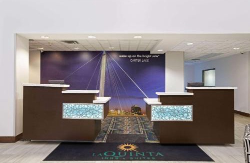 This hotel offers 24-hour airport shuttle services to Eppley Airfield. It also features an indoor pool with a hot tub and guest rooms with free WiFi. Each room at La Quinta Inn & Suites Omaha Airport – Carter Lake includes premium cable TV. The rooms are furnished with a microwave, refrigerator and coffee facilities. The hotel provides a fitness center and a business center. Guests at Omaha Airport La Quinta Inn & Suites can use the on-site laundry facilities as well. Creighton University is 2.8 mi from La Quinta Inn & Suites Carter Lake. Henry Doorly Zoo is 3.7 mi away.
