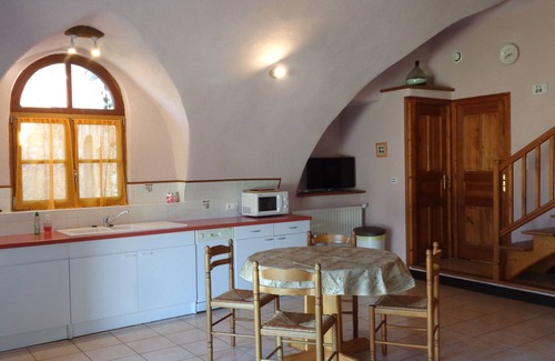 Lovers of the great outdoors, you will enjoy the charm and authenticity of our gîte La Remise. Located 5 km from the village of Saint André de Vezines, in the heart of an old farmhouse, you will particularly appreciate its beautiful living room with its typically Caussenarde vault. Its bay window will offer you a view of the whole farm building and in the background the Cévennes and Mont Aigoual. An outdoor space ideal for getting away from it all: observing nature (birds of prey, butterflies, flowers ...), photos, painting, walks, ... The recently fitted lounge at the back of La Remise under the big ash tree will allow you to enjoy the view with a little more height: there will be something for everyone depending on whether you prefer the shade or the sun for savor pleasant moments of rest, reading ... A playground for children up to around 12 years old is located near the gîte, and is also available for the second Le Pailler gîte and the owners' children; children remain under the supervision and responsibility of their parents. Swings, trapeze, trampoline, slide / tunnel, small garden house and sand corner! The owner has a traditional open-air poultry farm (chickens and guinea fowl) located in a building at the rear of the rental. Possibilities of parking in front of the gîte. Books on the region and tourist documentation are also available. WIFI available on request outside the gîte (the thickness of the walls does not allow proper operation inside the building). The gîte is made up of: - a living room with a sitting area, a sofa bed (convertible) - coffee table - flat screen TV (TNT channels), with dining area (table and chairs); the kitchen is fully equipped with double sink, gas hob, electric oven, fridge and freezer compartment, dishwasher 2-3 cutlery, microwave, classic filter coffee maker, kettle, toaster and all the necessary dishes. - the bedroom is located on the mezzanine (4 steps): it includes a large 140 cm bed, with 2 bedside tables, a large sliding storage cabinet; - the bathroom and WC are independent; the bathroom is made up of a basin fixed on a bathroom furniture with mirror, a shower; the washing machine is also in the bathroom. An outdoor and indoor clothes line, an iron and ironing board are also available. Bed linen can be made available as an option on request, at an additional charge of € 10 per bed per week (duvets and blankets are available). Optional towels can also be made available on request, at an additional cost of € 5 per week. The cleaning remains the responsibility of the tenant, the lodging must be returned in a perfect state of cleanliness. However, cleaning can be carried out by the owner as an option at the request of the tenant, for an additional fee of € 30 for the duration of the stay. On arrival, a deposit of the value of the cleaning fee will be requested, and retained at the end of the stay in the event that the cleaning has not been carried out correctly. The heating is an oil heating and is often essential in mid-season, it is also invoiced in supplement, at the rate of 10 € per day. Baby equipment can be made available as an option on request, at an additional cost of € 5 per week: cot, bath, high chair. Located 25 km and around 30 minutes by car from Millau, it is the nearest town where you will find all shops and services. Bakery and grocery store in Lanuéjols, 10 km and 15 minutes and in Le Rozier, 17 km and 25 minutes. We advise our guests to plan what is necessary for the day of their arrival! Our cottage is located in the heart of the Grands Causses Regional Natural Park, on the Causse Noir where you can discover many sites such as the picturesque village of Montméjean and its botanical path, the priory of Saint Jean de Balmes, the dolomitic chaos of Roquesaltes or from Montpellier le Vieux, the Dargilan cave, the abyss of Bramabiau, the Mont Aigoual meteorological observatory, the bison breeding of the Randals, but also magnificent hiking trails, to meet local producers (cheese from sheep, honey ...) ... The city of Millau offers guided tours of the city, night country markets on Monday evenings in July and August. Its museum and glove-shops are also waiting for you to discover its history. Finally, you will appreciate the panorama of the famous Millau Viaduct. From the cottage, you can discover the Gorges de la Dourbie, de la Jonte and le Tarn where swimming is pleasant in July and August. Canoeing - kayaking or other white water sports are possible. The Templar cities of Larzac, the Roquefort caves, the lakes and mountains of Lévezou, the castles of Rouergue such as the castle of Peyrelade and of Séverac ... are equally accessible and remarkable sites!