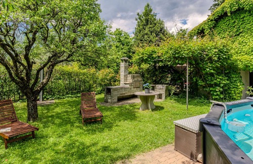 Comfortable, historical house "La Rina", 3 storeys. In the resort Dervio, 9 km from the centre of Varenna, 30 km from the centre of Lecco, 900 m from the lake. Private: property 1'000 m2 (fenced), beautiful garden to relax, swimming pool (above ground) round (4 m diameter, depth 160 cm, seasonal availability: 01.May. - 15.Oct.). Outdoor shower, pool house with fridge and cooking stove, barbecue, pool maintenance by the owner/gardener. In the house: storage room for bicycles, washing machine. Linen change (suppl. charge extra). Towel change (suppl. charge extra). Room cleaning on request (extra). Parking (for 3 cars). Shop 150 m, grocery 180 m, supermarket 400 m, restaurant 130 m, bar, bakery 450 m, 5 minute walk to the centre, bus stop 300 m, grass beach "Dervio" 850 m. Marina 1 km, surf school, sailing school 800 m, walking paths from the house 10 m, children's playground 900 m. Nearby attractions: Torre di Orezia 1 km, Corenno Plinio 3 km, Orrido di Bellano 4 km, Menaggio 13 km. Well-known ski regions can easily be reached: Madesimo 57 km, Chiesa in Valmalenco 65 km, St. Moritz 80 km. Well-known lakes can easily be reached: Lago di Mezzola. Hiking paths: Monti di Dervio e Muggiasca, Sentiero del Viandante, Sentieri Valvarrone. Groups of teenagers on request only.