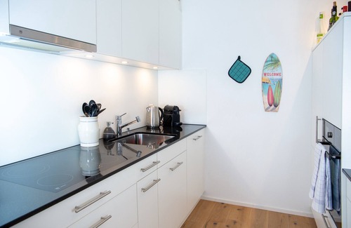 This lovingly furnished 2-room holiday apartment on the ground floor offers the ideal retreat for two people who want to spend relaxing days in the midst of the magnificent Grisons mountain landscape on around 70 m² of living space. The light-flooded living area with a cosy fireplace invites you to enjoy relaxed hours - whether reading a good book or enjoying a glass of wine in the evening. The separate kitchen is fully equipped with an electric hob, refrigerator, oven, freezer, dishwasher, coffee machine, deep fryer, toaster, kettle and all cooking utensils - perfect for those who like to cook even on holiday.