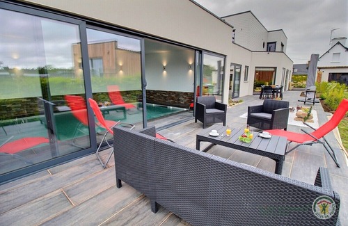 Your vacation rental includes on the ground floor (accessible for people with reduced mobility): kitchen, living room, lounge, bedroom (1 double bed 160x200) including a bathroom with shower and toilet, laundry room, separate toilet. Floor: two bedrooms (2 single beds 90x200, 1 double bed 160x200), bathroom with shower, wc. At your disposal: covered and heated swimming pool open all year round, dimensions: 6 m x 3.50 m, depth 1.70 m. You will appreciate the only outdoor space: the beautiful and large landscaped terrace (50 m²) and a private courtyard where you can park your vehicles. Passive house (heating by reversible air conditioning). Telework space. Table football available. Possibility to recharge your electric car. This villa will appeal to all those who dream of escape, of great comfort, of a warm interior. What a luxury to be able to benefit from a swimming pool just for you! And what about the view? Here you can contemplate the sea and admire the sunsets .... The house is close to two other gites (22G121417 and 22G121428) and is located in the municipality of Trebeurden, in the heart of the Côte de Granit Rose. For your excursions, you will be spoiled for choice .... beaches or discovery of natural sites (tip of Bihit, Quellen marshes, Milau island ..) At 13 km, the famous seaside resort of Perros-Guirec, where you can embark on an excursion around the 7 islands will tempt you. Without forgetting the visit of Ploumanac'h (15 km) or Tregastel (9 km) which are also worth a detour. Children to entertain? Take them to the Pleumeur-Bodou radome park (9 km away) with its Gallic village, its city of telecommunications and its planetarium. The region is magnificent as is the gîte, book it quickly!