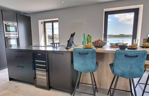 This large stone farmhouse, offers you for your holidays, on the ground floor, large volumes for the living rooms: fully equipped and open kitchen, spacious living room and lounge with all the sea view. Two laundry rooms, two toilets including a with washbasin. A bedroom for two people (160x200 bed) with a private bathroom in the bedroom. The floor is divided into two parts; access by the stairs from the living room, leading to three bedrooms (two 140x190 beds and one 160x200 bed) and a bathroom with bath and shower, a separate toilet. The second access is via the stairs in the living room, leading to two double bedrooms (160x200 beds, possibility of dividing into 80x200 beds). A bathroom and a separate toilet. The property is on a closed ground, a huge terrace offers you a breathtaking view, on the side a pretty little corner of sheltered paradise, and at the back, a garden and a view of the Lorois bridge. Private parking. Stay in Plouhinec, a town in southern Morbihan ideally located between the Ria d'Etel and the small sea of Gâvres, a paradise for kite-surfing and shore fishing. For lovers of the sea, the Ria d'Etel promises you beautiful discoveries including the island of St Cado not to be missed. Plouhinec is a town that offers all the shops and all the services you will need during your stay. The immense beach of Magouëro (6 km away) benefits from the Blue Flag and a dune site crossed by multiple paths. Come and discover this exceptional place, and this bay dotted with islets, is one of the most beautiful sites in the region. A wide variety of landscapes are available to you: wild beaches, marshes, typical ports… Hikers will be delighted by the proximity of the coastal paths.