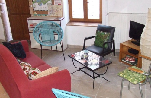 By pushing the portal of this old adobe farm in the heart of the village, you have the impression of being in the countryside while being in the immediate vicinity of public transport and Lyon. This furnished