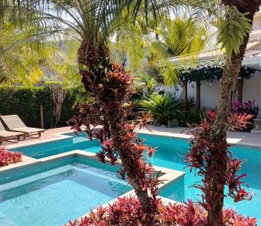 La Salamandre Paraty is a recently renovated homestay in Paraty where guests can make the most of its outdoor swimming pool, garden, and shared lounge. Built in 2017, the property includes sauna and hot tub. There's a sun terrace and guests can use free Wifi and free private parking. Towels and bed linen are provided in the homestay. The property has an outdoor dining area. Guests at the homestay can enjoy a buffet breakfast. Guests at La Salamandre Paraty will be able to enjoy activities in and around Paraty, like hiking and walking tours. The homestay has a picnic area where you can spend the day outdoors. Paraty Bus station is 1.6 miles from the accommodation, while Puppet Theatre is 1.2 miles away. São José dos Campos Airport is 131 miles from the property.