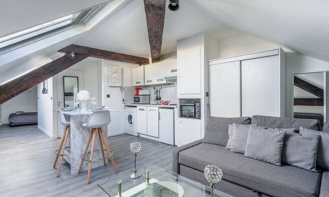 La Secrète - Bel appartement mansardé is located in Republique - Les Ponts. La Secrète - Bel appartement mansardé provides accommodation, featuring Fireplace/Heating, Internet, Laundry, among other amenities. This Apartment features Fireplace/Heating, Internet, Laundry, to make your stay a comfortable one.