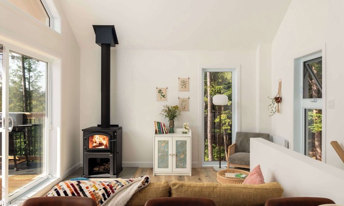 Outside, a lovely terrace invites you to savor the mild autumn days. End the day in style around the outdoor fire pit, sharing stories under the stars after a beautiful hike in the Lanaudière region!