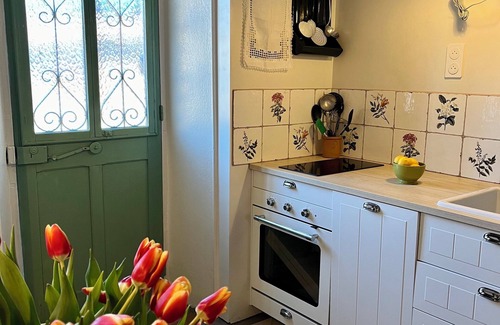 A fireplace and a desk are featured at this 1-bedroom, 1-bathroom rental. Enjoy the WiFi, TV, and music library. Bathroom amenities include a hair dryer, towels, and toilet paper. The kitchen is equipped with an oven, a stovetop, and a refrigerator, as well as a coffee maker, an electric kettle, and a microwave. Other amenities include bed sheets, an ironing board, heating, and bicycle parking.