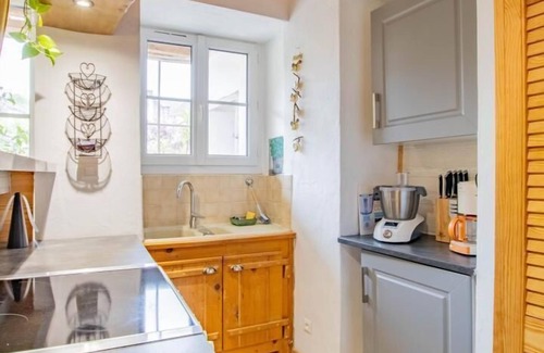 Belgian by origin and Burgundian by adoption, Vinciane & Alain welcome you to an elegant, authentic, characterful winegrower's house from 1870, steeped in history and carefully restored (featuring a traditional "Mâconnaise gallery"), nestled in peace on the edge of a bucolic plateau of meadows nestled under gentle wooded ridges, a stone's throw from the vineyards, on the edge of a peaceful, picturesque little wine-growing village in the upper Mâconnais. Perfectly preserved, nestled in the heart of the preserved Tournugeoise countryside in the hollow of a peaceful valley surrounded by vast wild forest massifs, on the southern slope of the Crâ hill (offering on a clear day an exceptional panoramic view as far as Mont Blanc), within a protected natural area in ZNIEFF & "Natura 2000 Zone" for its rich fauna & flora (to explore on foot or mountain bike), the typical village of Royer benefits from a sublime landscaped setting. Spacious gîte with very good comfort. Lovely country character mixed with a warm wooded mountain atmosphere with a "chalet" spirit. Lots of charm. Cozy & cozy. Pleasant large enclosed courtyard, planted & flowered (to the east) with a double terrace (one sheltered & one "on courtyard" in gravel). Large, shaded, west-facing gravel terrace opening onto a pleasant, enclosed, grassy garden (400m²), planted with trees, and featuring a "herb garden" and a mini orchard (cherry, apple, peach, walnut, pear, fig, etc.) / picking possible. Composition: Gite adjoining the owners' home on a property housing a second gîte (complete independence). Wi-Fi (fiberglass). Electric heating + wood pellet stove. Ground floor: living room-kitchen-lounge, bathroom (bathtub/toilet), separate toilet, veranda. 1st floor: 3 bedrooms (double bed 160x200cm in each), shower room (multi-jet shower), separate toilet. Enclosed courtyard + gravel terrace + sheltered terrace + bicycle storage + private parking. All amenities including supermarkets are 8.5 km away.
