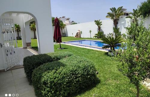 Featuring a garden, La superbe villa à Kélibia la blanche features accommodations in Kelibia. This beachfront property offers access to a balcony. The villa offers a year-round outdoor pool, a 24-hour front desk, and free Wifi is available throughout the property. Offering a terrace and sea views, the spacious villa includes 4 bedrooms, a living room, flat-screen TV, an equipped kitchen, and 4 bathrooms with a bath and a shower. Featuring air conditioning, this unit has a dressing room and a fireplace. The property has an outdoor dining area. Guests can also relax in the shared lounge area. Plage de La Mansourah is a 10-minute walk from the villa. Tunis–Carthage Airport is 71 miles from the property.