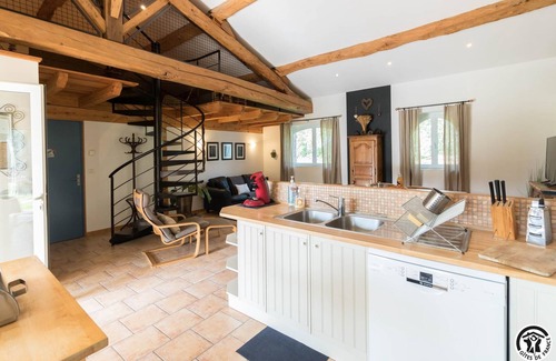 You will find peace and quiet in this farm, both close to Toulouse (30km) and away from the hustle and bustle of the metropolis. You will have plenty to do in Muret 10km away: Aqualudia water park, ViaGarona hiking trail, Bonnets swimming lake and Horizon Pyrénées event hall. The African Safari Zoo is 12km away. Fishing lakes 10 minutes away. And the Gers department with the Samatan fat market 30 minutes away. Ground floor: living room with kitchen area, 2 bedrooms (1 double bed 140cm) (2 single beds 90cm), bathroom, WC. On the mezzanine, accessible from the living room by spiral staircase: relaxation area/attic office. Geothermal underfloor heating. Games room shared by the 2 gîtes (ping-pong, table football). Outdoor space: common land, private covered terrace of 20m2. Car park. Adjoining another gîte, not overlooked. Owners' accommodation and year-round accommodation in separate buildings, nearby. Long-term rates: €294/week (from 4 consecutive weeks except the period from mid-June to mid-September and the end-of-year holidays.).