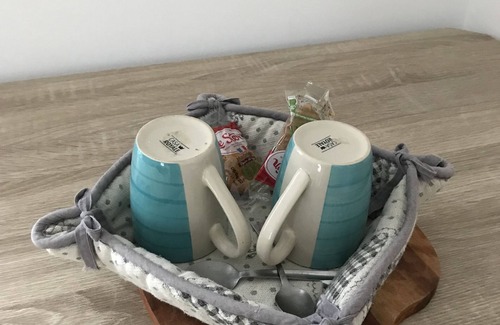 This vacation rental features a sofa bed and a desk. Connect to the free WiFi, or get cozy in front of the Smart TV. Bathroom amenities include a hair dryer, towels, and toilet paper. The kitchen is equipped with an oven, a stovetop, and a refrigerator, as well as a coffee maker, an electric kettle, and a microwave. Other amenities include bed sheets, soundproofing, heating, and wardrobe or closet.