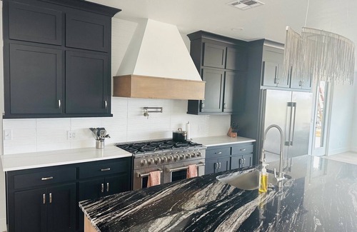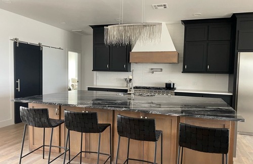Relax and take in the breathtaking 180-degree water view. The 5100 sq ft, 7 bedroom, 4 bath (sleeps 21) home features an open concept chef kitchen, modern decor, fireplace, fire pit, built-in grill and maximized views! Enjoy!! Property includes 2 large living areas downstairs and upstairs, upstairs and downstairs laundry rooms, walk-in pantry, office, keurig/traditional coffee downstairs, upstairs kitchenette, dishes, cups, silverware, pots and pans, towels, toilet paper, games, books and more…