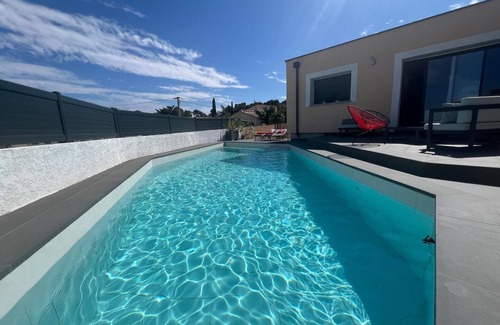 VILLA located in a very quiet residential area overlooking the Bages and Peyriac de mer lakes. In the commune of Narbonne, 10 minutes from the mythical Halles de Narbonne.