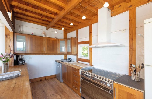 Villa for 8/10 persons, kitchen opening on the living room, 4 bedrooms, 2 on the mezzanine, 2 bathrooms, 2 toilets, laundry room, big screen TV, sofa, big stove 5 fires, dishwasher, big fridge freezer.