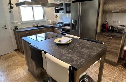 We offer a comfortable stay on the coast, close to the beaches and the lakes of Aureilhan and Sainte Eulalie. This rental is attached to the owners' second home. It is bright and modern and features a swimming pool (12m x 6m, maximum depth 1.50m), a trampoline, table tennis, a pétanque court, and a playground. This single-story apartment features: a living room (4-seater sofa bed with a queen-size mattress) with a fully equipped kitchen (induction hob, American-style fridge, oven, and microwave), a bedroom (queen-size bed), a second bedroom (queen-size bed and a queen-size bed above the queen-size bed), a bathroom (walk-in shower), a toilet, a laundry room (washing machine, dryer). Reversible air conditioning is available in the living room and bedrooms. Ideal for up to 4 adults + 2 children, given the bunk beds (not suitable for adults). For your comfort, bed linens, towels, and Wi-Fi are provided. The property is fenced and offers a private terrace with garden furniture, sun loungers, and a plancha grill. The outdoor leisure facilities are shared with the owners, who may occasionally use their vacation home on site. Free baby equipment is available upon request: high chair, changing mat, travel cot, potty, and step stool. An electric car charging outlet is also available.