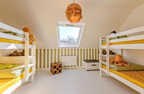 La villa iodée, le confort d une maison neuve équipée d une piscine intérieure chauffée toute l année, très proche des plus belles plages is a recently renovated villa in Fouesnant where guests can make the most of its indoor pool, garden, and barbecue facilities. Guests may go for a swim in the private pool. The villa also offers free Wifi, free private parking, and facilities for disabled guests. Offering a terrace with pool views, this villa also features a satellite flat-screen TV, a well-equipped kitchen with a dishwasher, an oven, and a microwave, as well as 3 bathrooms with a walk-in shower and a hair dryer. The property has an outdoor dining area. You can play darts at the villa, and bike rental is available. Outdoor play equipment is also available for guests at la villa iodée, le confort d une maison neuve équipée d une piscine intérieure chauffée toute l année, très proche des plus belles plages. Mousterlin Beach is a 17-minute walk from the accommodation, while Quimper Train Station is 11 miles from the property. Lorient South Brittany Airport is 39 miles away.